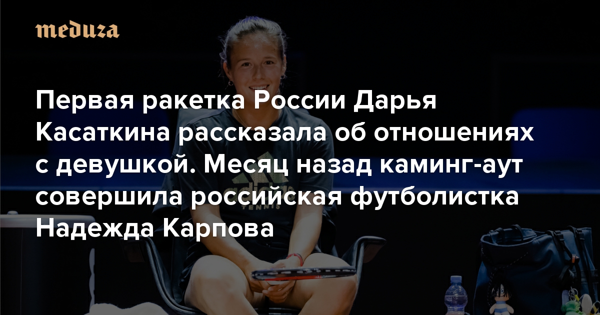 18 июля спортивный блогер Витя Кравченко выпустил ролик с российскими теннисистами Андреем Рублевым (восьмая ракетка мира) и Дарьей Касаткиной (12-я ракетка мира и первая ракетка России), которые живут в Испании. В этом видео Касаткина рассказала о своей гомосексуальности, а также об отношении к войне и о мыслях про смену гражданства из-за отстранения российских спортсменов от соревнований. А после каминг-аута теннисистка выложила совместное фото со своей девушкой. «Медуза» пересказывает слова Касаткиной — и реакции на них.