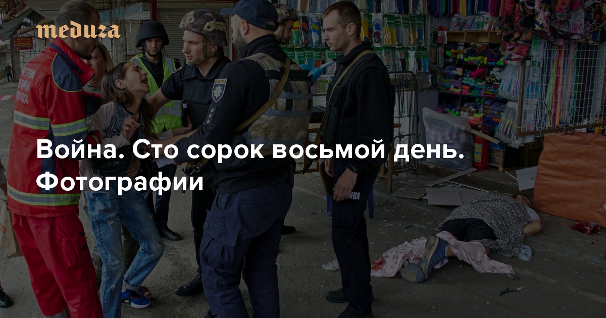 Российские войска обстреляли рынок в Харькове и автобусную остановку рядом с ним — погибли три человека (очевидцы рассказывают, что некоторые раненые «горели полностью»). В Краматорске под завалами разрушенной школы находятся два человека, один человек погиб. Директор ЦРУ сообщил, что, по данным американских спецслужб, в Украине погибло около 15 тысяч российских военных. В отношении России вступил в силу седьмой пакет санкций ЕС — он включает частичный запрет на импорт российского золота. «Медуза» публикует главные фотографии сто сорок восьмого дня войны.