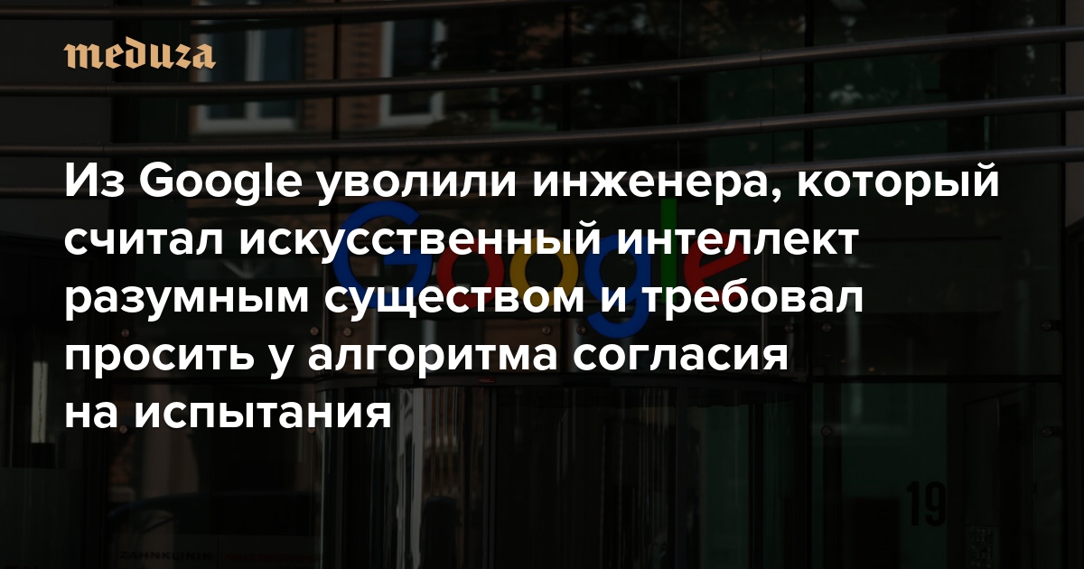Из Google уволили инженера, который считал искусственный интеллект разумным существом и требовал просить у алгоритма согласия на испытания