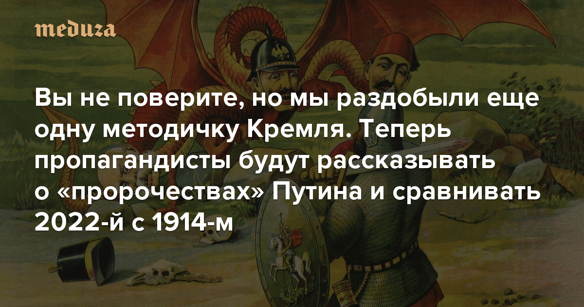 Вы не поверите, но мы раздобыли еще одну методичку Кремля. Теперь пропагандисты будут рассказывать о «пророчествах» Путина и сравнивать 2022-й с 1914-м Бонус: кажется, мы знаем, кто все это придумывает