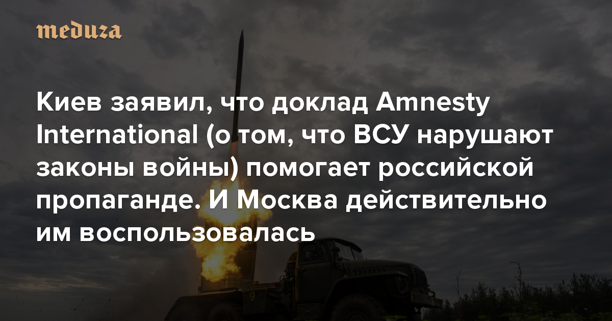 Киев заявил, что доклад Amnesty International (о том, что ВСУ нарушают законы войны) помогает российской пропаганде. И Москва действительно им воспользовалась «Медуза» показывает как