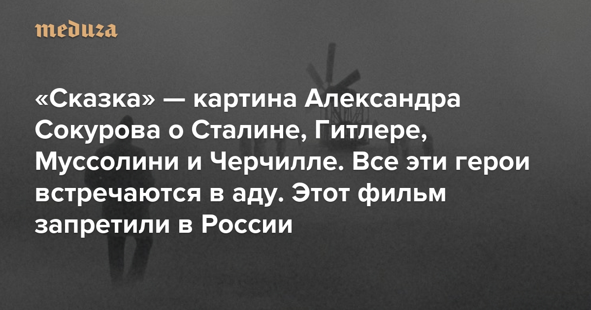 «Сказка» — картина Александра Сокурова о Сталине, Гитлере, Муссолини и Черчилле. Все эти герои встречаются в аду Этот фильм запретили в России