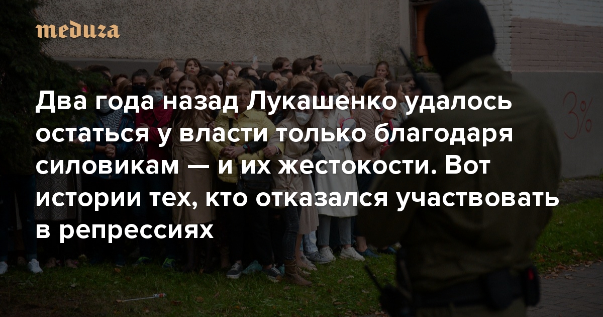 «Кто-то подходил и говорил: ты мужик! Другие считали, что я предатель» Два года назад Лукашенко удалось остаться у власти только благодаря силовикам — и их жестокости. Вот истории тех, кто отказался участвовать в репрессиях