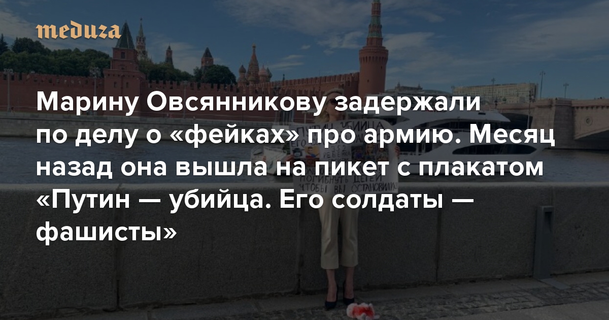 Марину Овсянникову задержали по делу о «фейках» про армию. Месяц назад она вышла на пикет с плакатом «Путин — убийца. Его солдаты — фашисты»