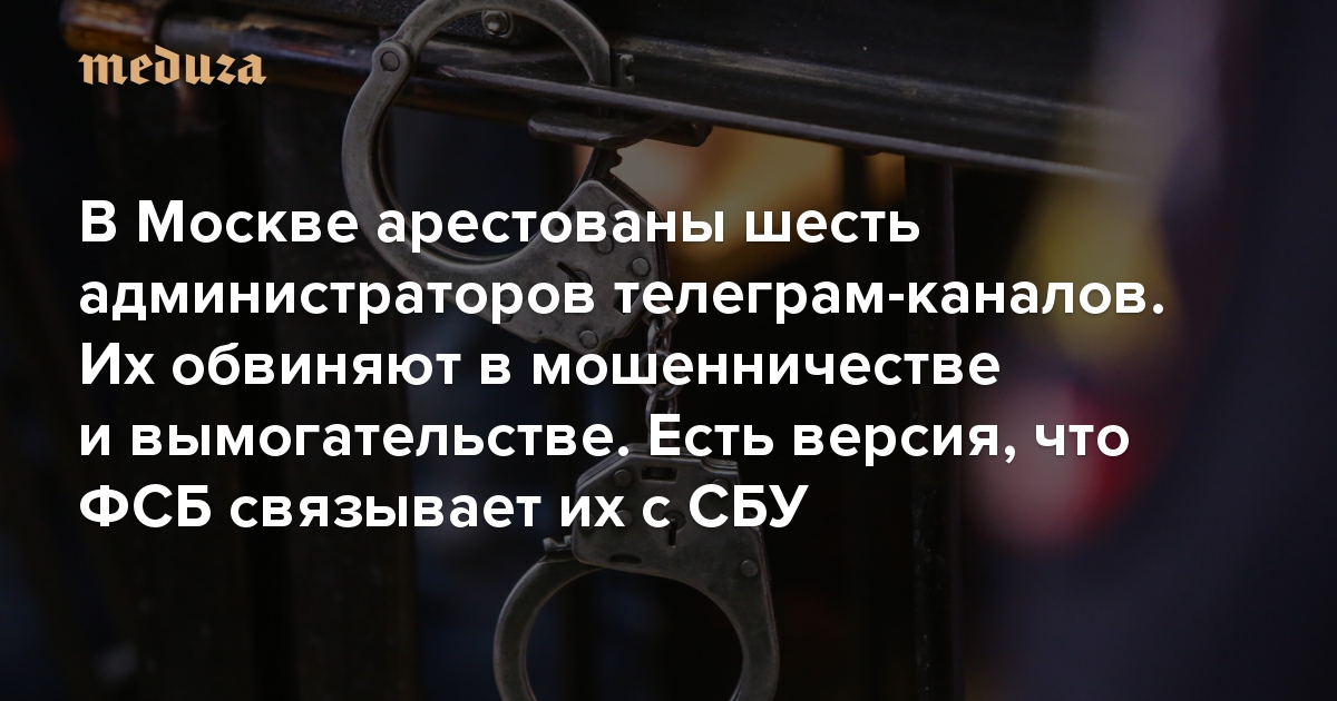 В Москве арестованы шесть администраторов телеграм-каналов. Их обвиняют в мошенничестве и вымогательстве Есть версия, что ФСБ связывает их с СБУ