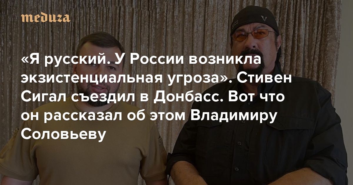 «Я русский. У России возникла экзистенциальная угроза» Стивен Сигал съездил в Донбасс. Вот что он рассказал об этом Владимиру Соловьеву (не смотрите это — ведь можно прочитать наш пересказ)