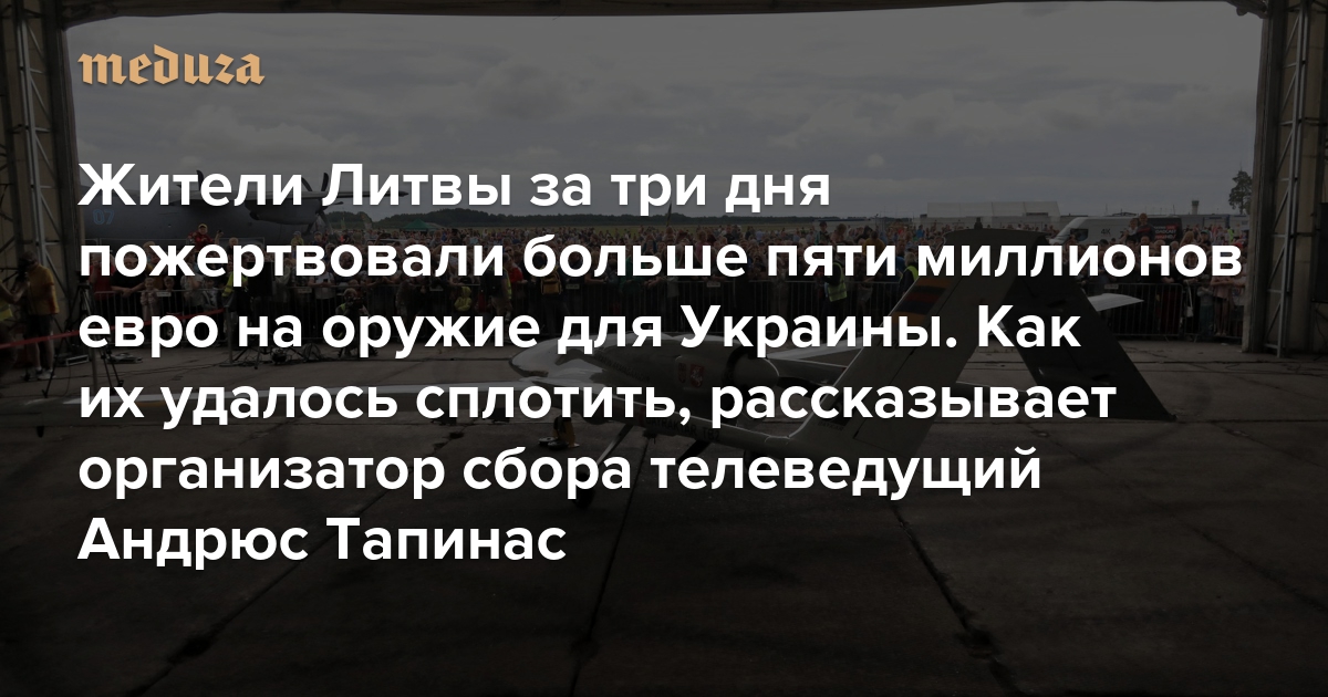 Жители Литвы за три дня пожертвовали больше пяти миллионов евро на оружие для Украины Организатор сбора телеведущий Андрюс Тапинас — о том, почему литовцев сплотила война в другой стране