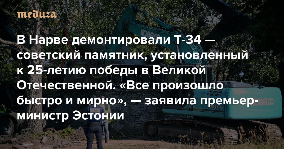В Нарве демонтировали Т-34 — советский памятник, установленный к 25-летию победы в Великой Отечественной «Все произошло быстро и мирно», — заявила премьер-министр Эстонии