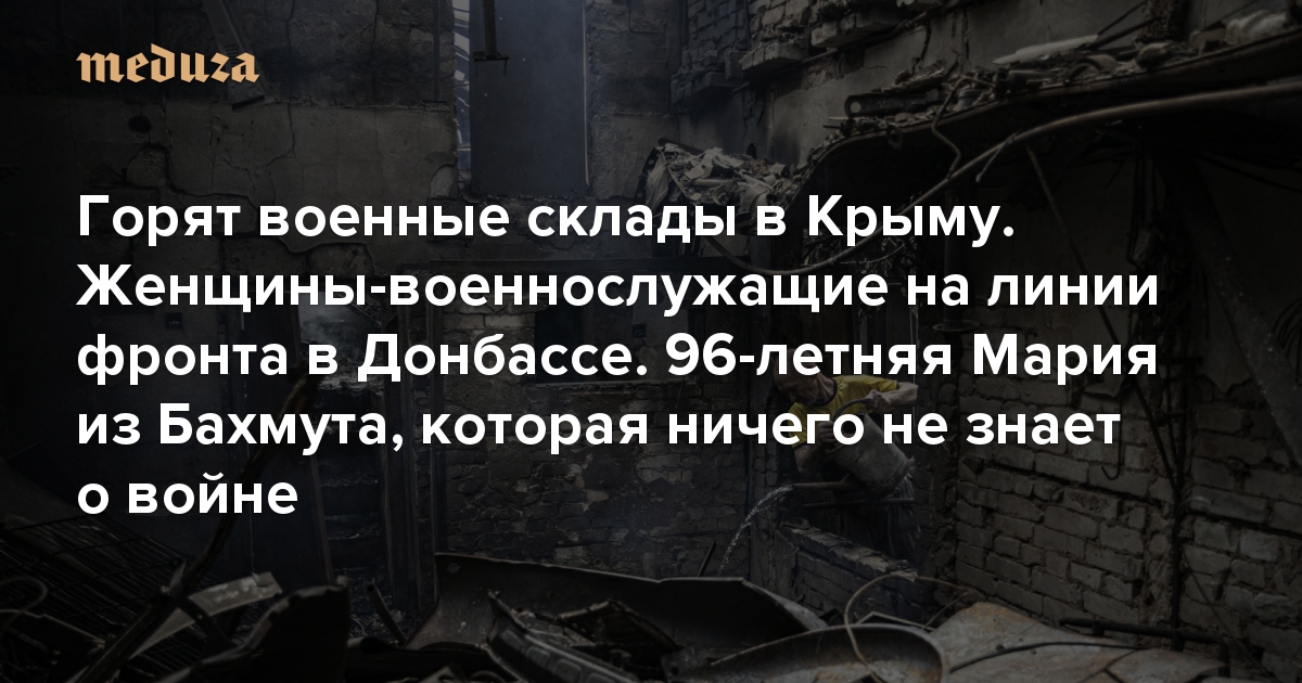 Война. Сто семьдесят четвертый день. Фотографии Горят военные склады в Крыму. Женщины-военнослужащие на линии фронта в Донбассе. 96-летняя Мария из Бахмута, которая ничего не знает о войне