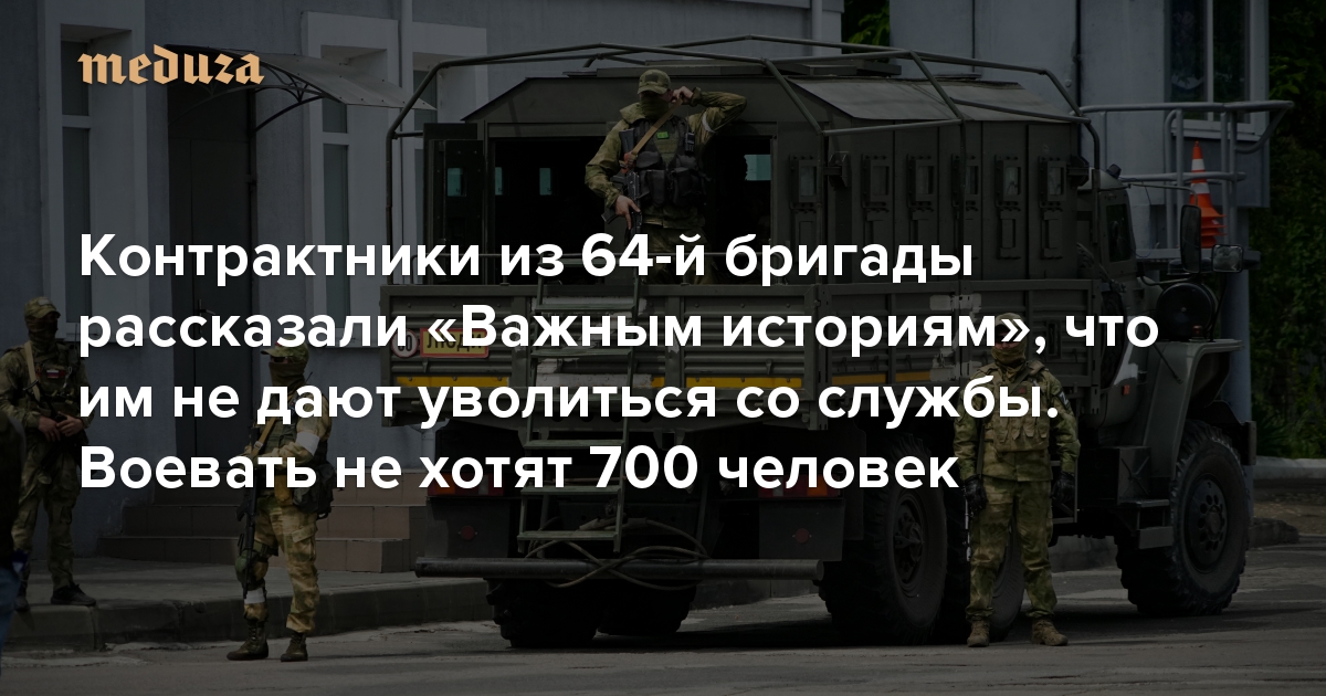 «Командованию насрать на военнослужащих» Контрактники из 64-й бригады рассказали «Важным историям», что им не дают уволиться со службы. Воевать не хотят 700 человек