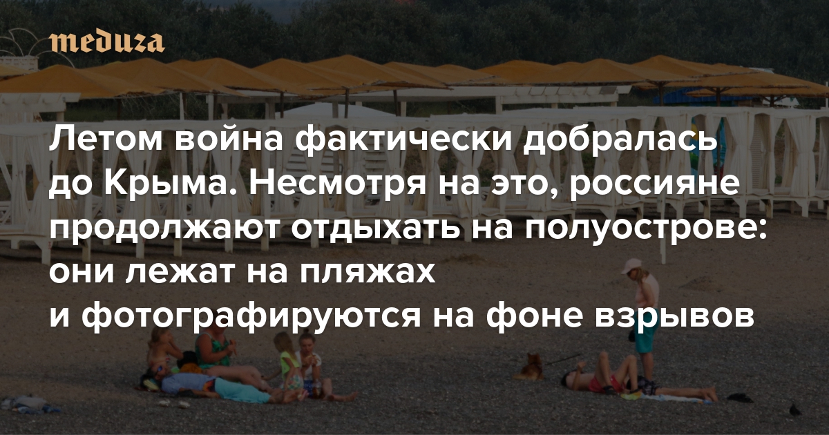 «Я смотрю на это все сквозь пальцы. Мне до лампочки» Летом война фактически добралась до Крыма. Несмотря на это, россияне продолжают отдыхать на полуострове: они лежат на пляжах и фотографируются на фоне взрывов