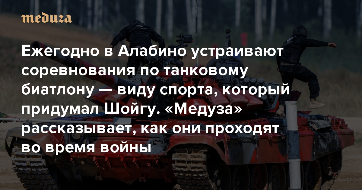 «Здесь не только стреляют, здесь царит настоящая любовь» Ежегодно в Алабино устраивают соревнования по танковому биатлону — виду спорта, который придумал Шойгу. «Медуза» рассказывает, как они проходят во время войны