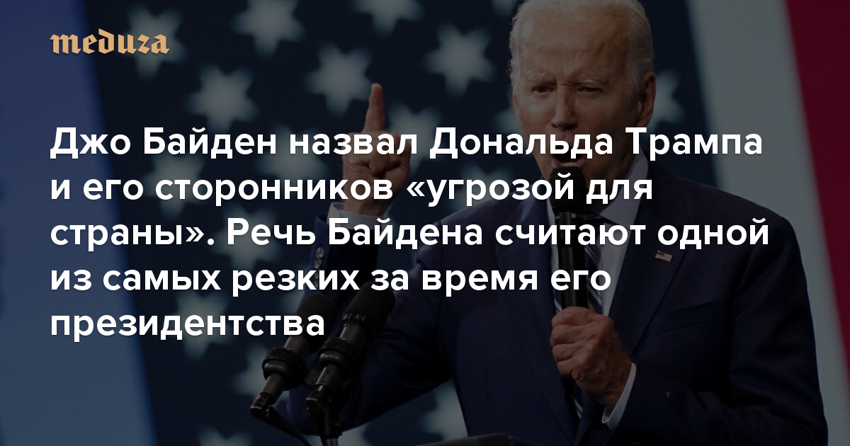 Джо Байден назвал Дональда Трампа и его сторонников «угрозой для страны» Речь Байдена считают одной из самых резких за время его президентства