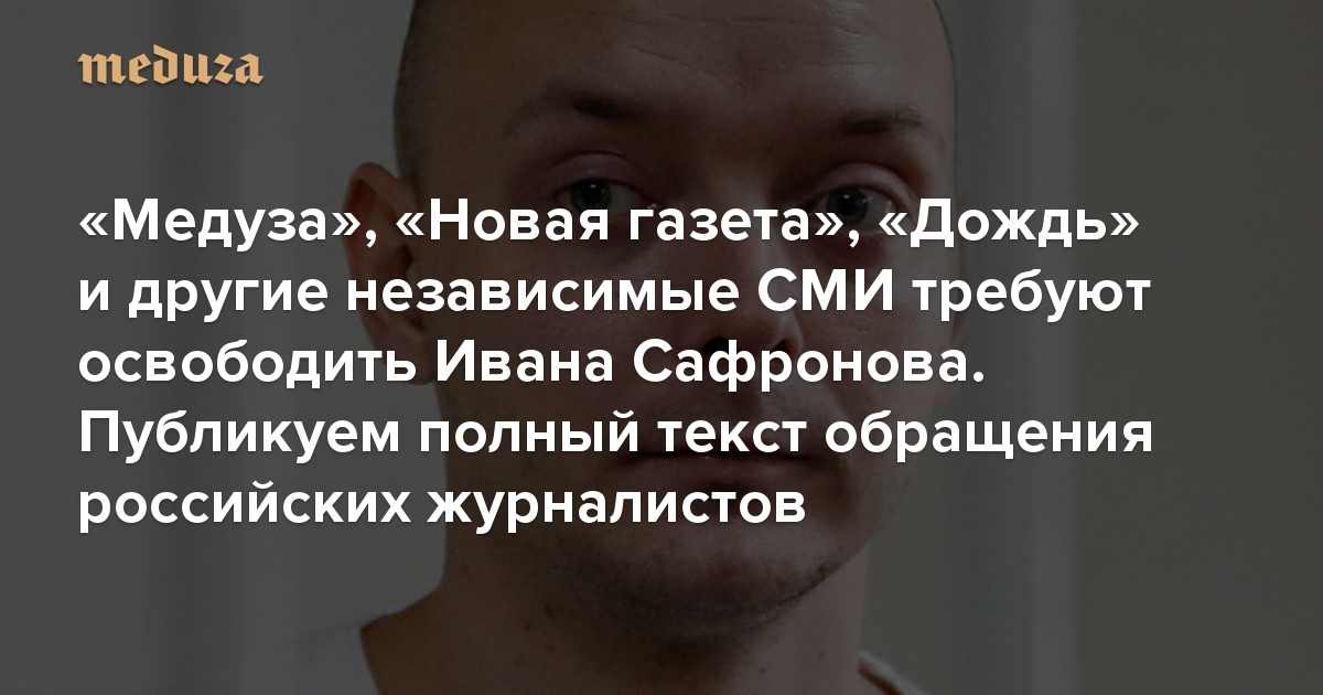 «Медуза», «Новая газета», «Дождь» и другие независимые СМИ требуют освободить Ивана Сафронова Публикуем полный текст обращения российских журналистов