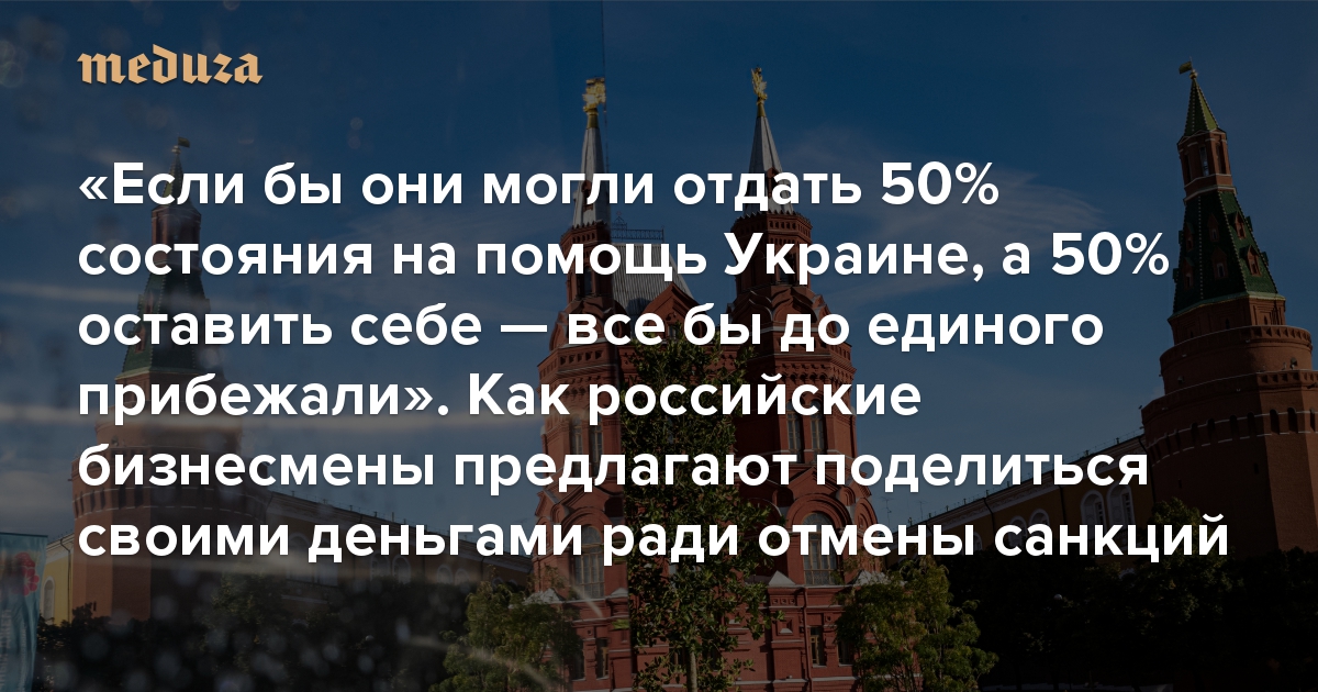 «Если бы было какое-то правило, согласно которому они отдают 50% своего состояния на поддержку Украины, а остальные 50% оставляют себе, то все до единого прибежали бы», — заявил один из российских бизнесменов.