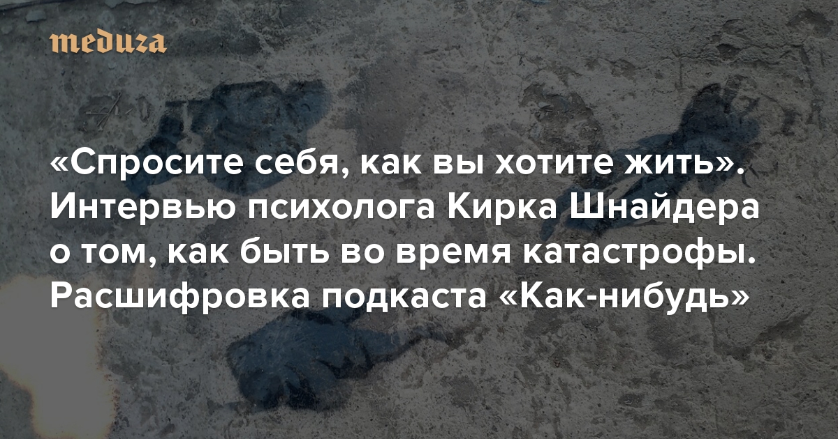 «Спросите себя, как вы хотите жить» Интервью психолога Кирка Шнайдера о том, как быть во время катастрофы. Расшифровка подкаста «Как-нибудь»