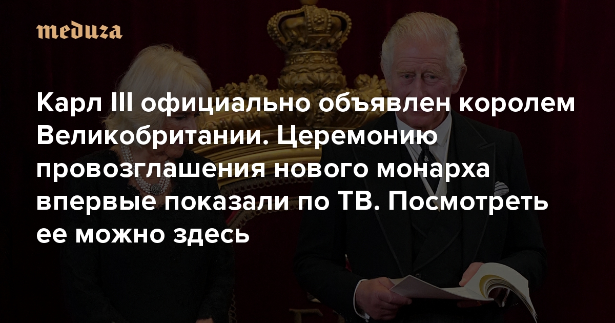 Церемонию провозглашения нового монарха Великобритании впервые показали по телевизору. Посмотреть ее запись можно в том числе здесь (на английском языке).