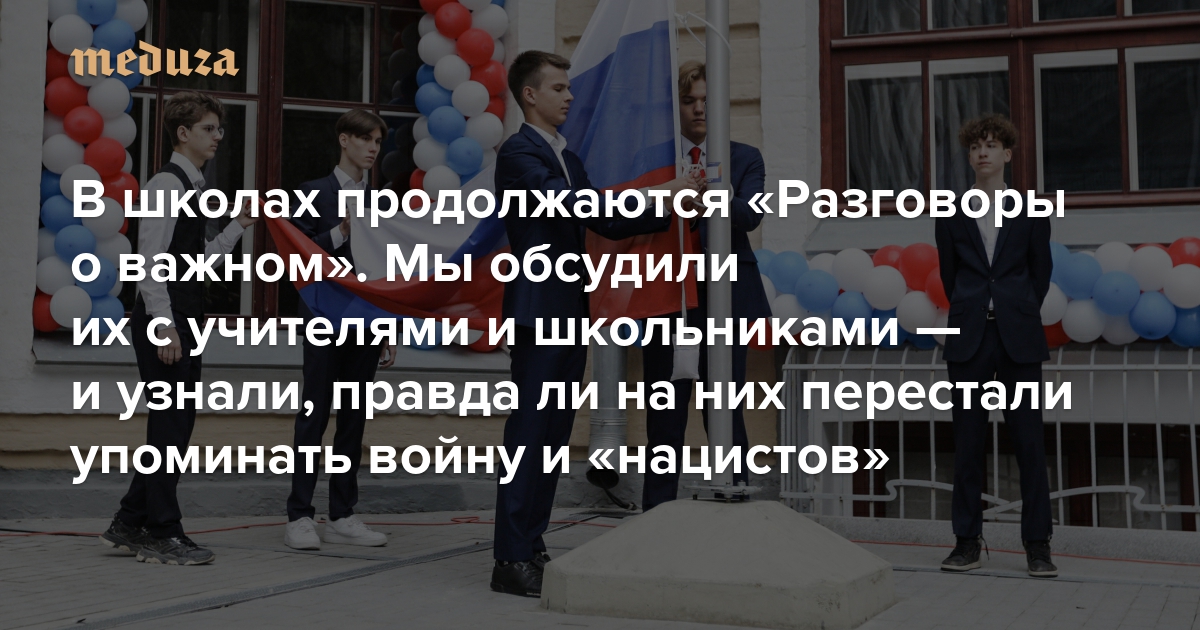«Нельзя говорить о величии страны, сидя в кабинетах, которые вот-вот развалятся» В школах продолжаются «Разговоры о важном». Мы обсудили их с учителями и школьниками — и узнали, правда ли на них перестали упоминать войну и «нацистов»