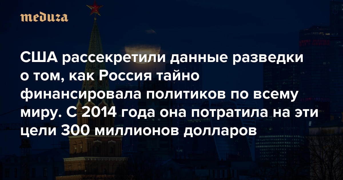 США рассекретили данные разведки о том, как Россия тайно финансировала политиков по всему миру С 2014 года она потратила на эти цели 300 миллионов долларов