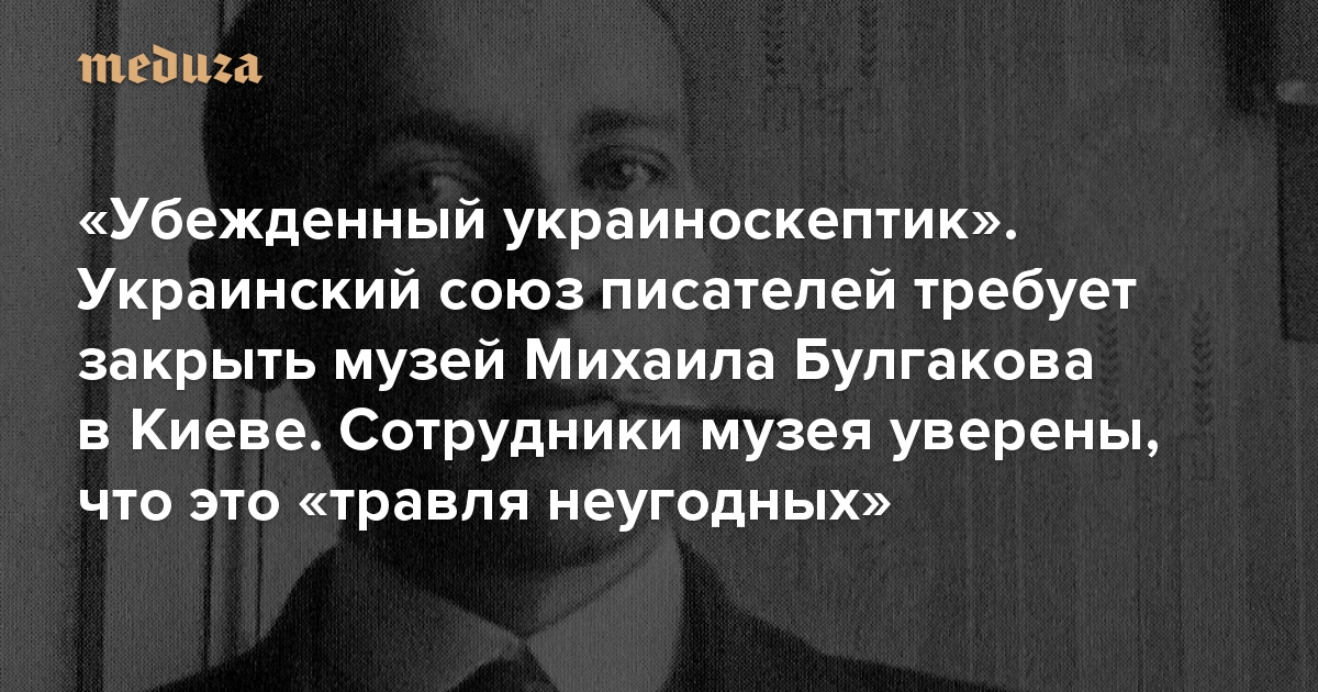 «Убежденный украиноскептик» Украинский союз писателей требует закрыть музей Михаила Булгакова в Киеве. Сотрудники музея уверены, что это «травля неугодных»