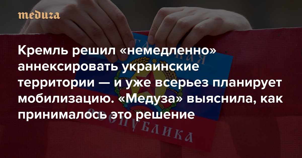 «Партия войны» победила Кремль решил «немедленно» аннексировать украинские территории — и уже всерьез планирует мобилизацию. «Медуза» выяснила, как принималось это решение