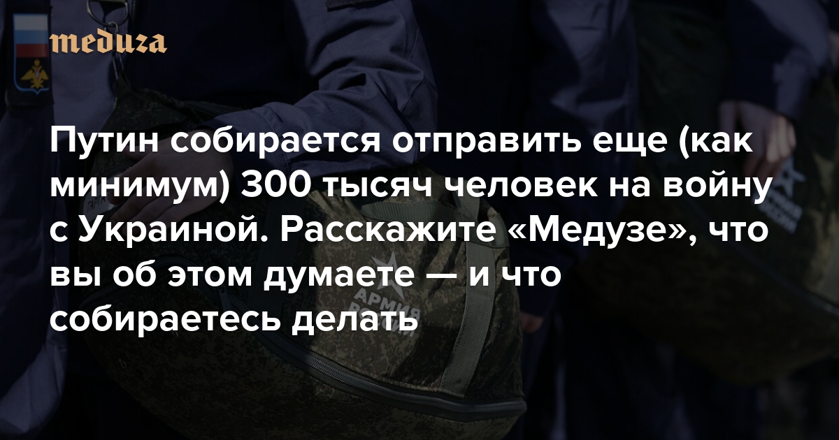 Путин собирается отправить еще (как минимум) 300 тысяч человек на войну с Украиной Расскажите «Медузе», что вы об этом думаете — и что собираетесь делать