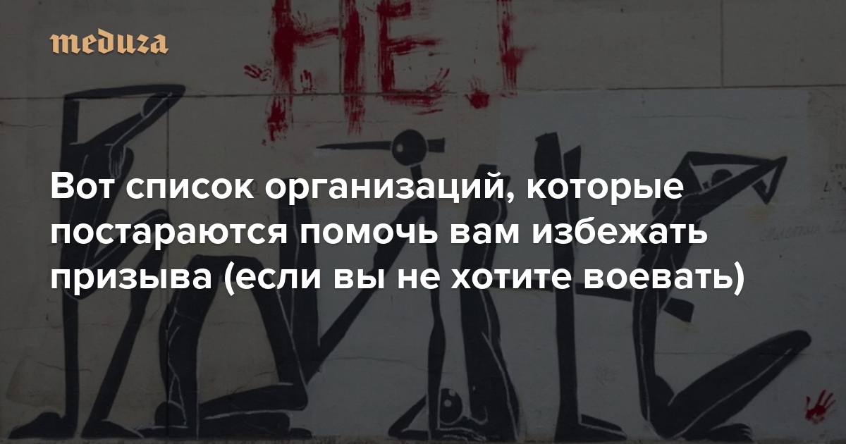 Утром 21 сентября Владимир Путин ввел в России частичную мобилизацию. Власти РФ собираются отправить на войну в Украине еще до 300 тысяч человек — об этом заявил министр обороны Сергей Шойгу. Если вы не хотите воевать в Украине и пытаетесь избежать призыва, почитайте этот материал. «Медуза» собрала список организаций, которые помогают уехать из России, а также консультируют тех, кто не хочет служить.