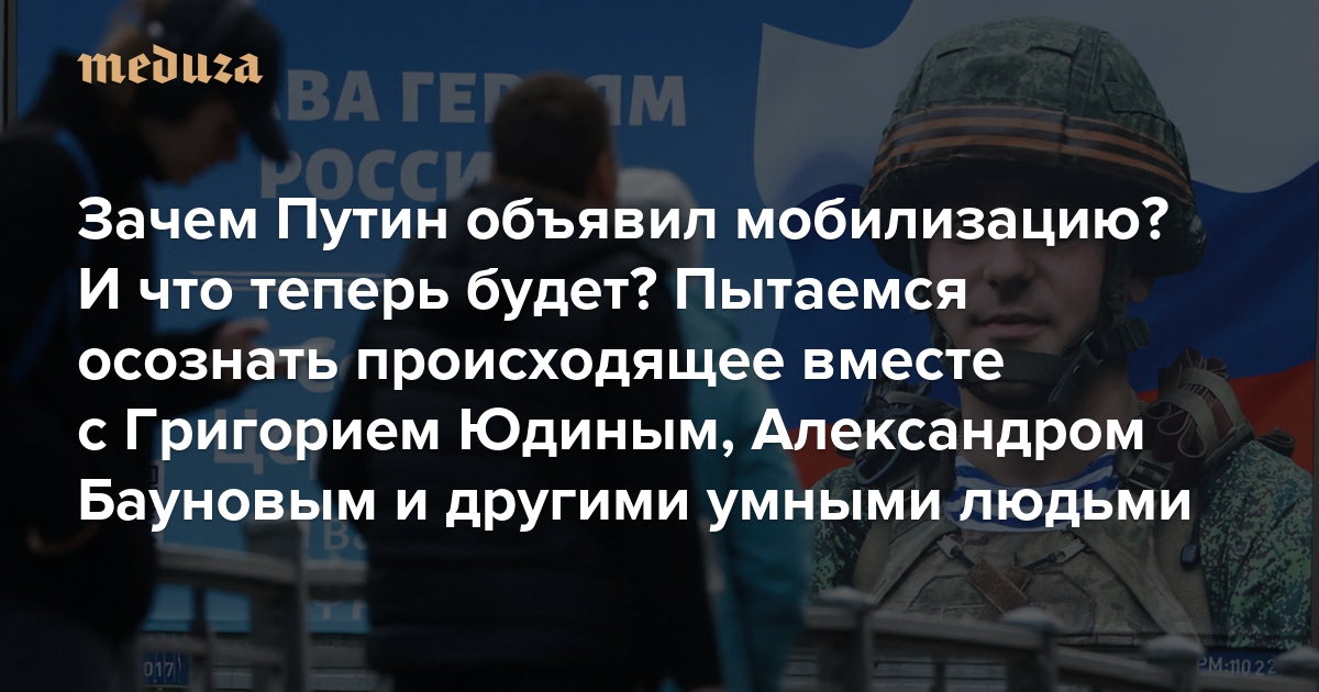 Зачем Путин объявил мобилизацию? И что теперь будет? Пытаемся осознать происходящее вместе с Григорием Юдиным, Александром Бауновым и другими умными людьми