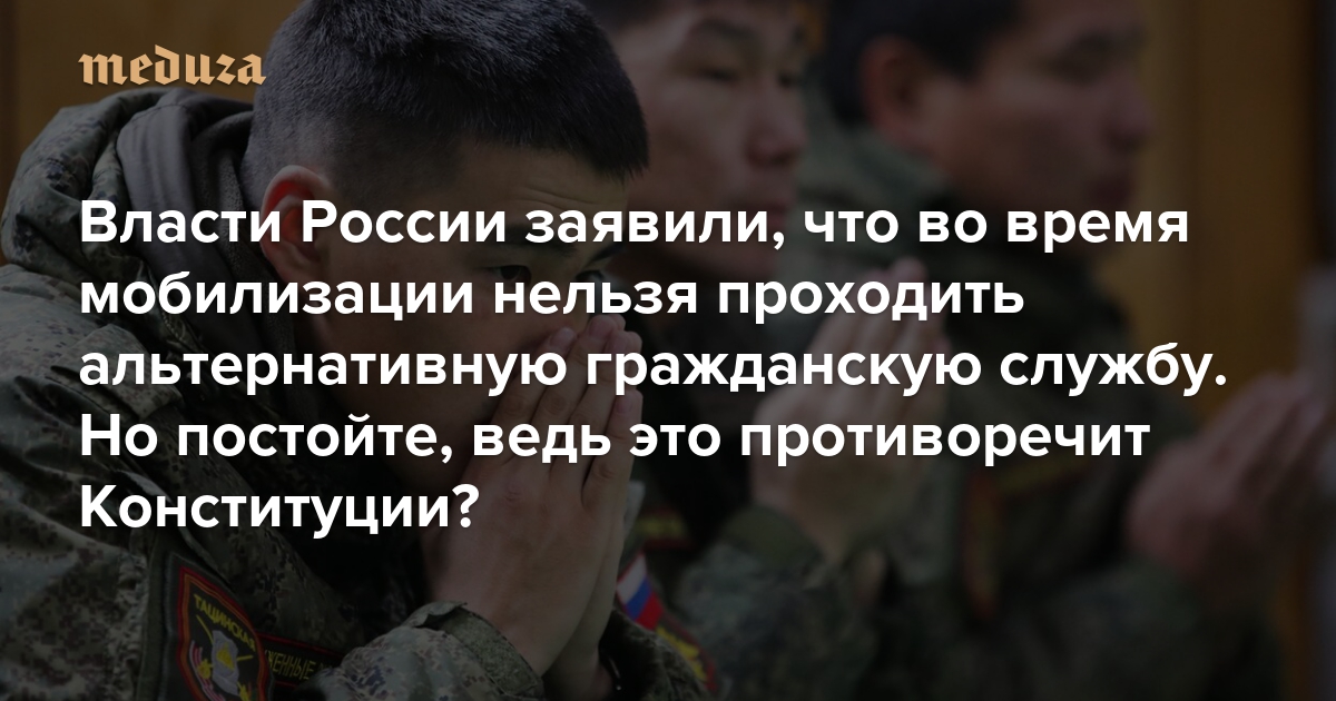 Власти России заявили, что во время мобилизации нельзя проходить альтернативную гражданскую службу. Но постойте, ведь это противоречит Конституции?