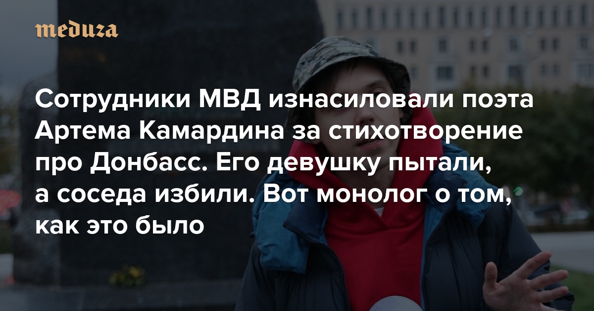 «То, что было с Артемом, — слышал. Невозможно было не слышать» Сотрудники МВД изнасиловали поэта Артема Камардина за стихотворение про Донбасс. Его девушку пытали, а соседа избили. Вот монолог о том, как это было