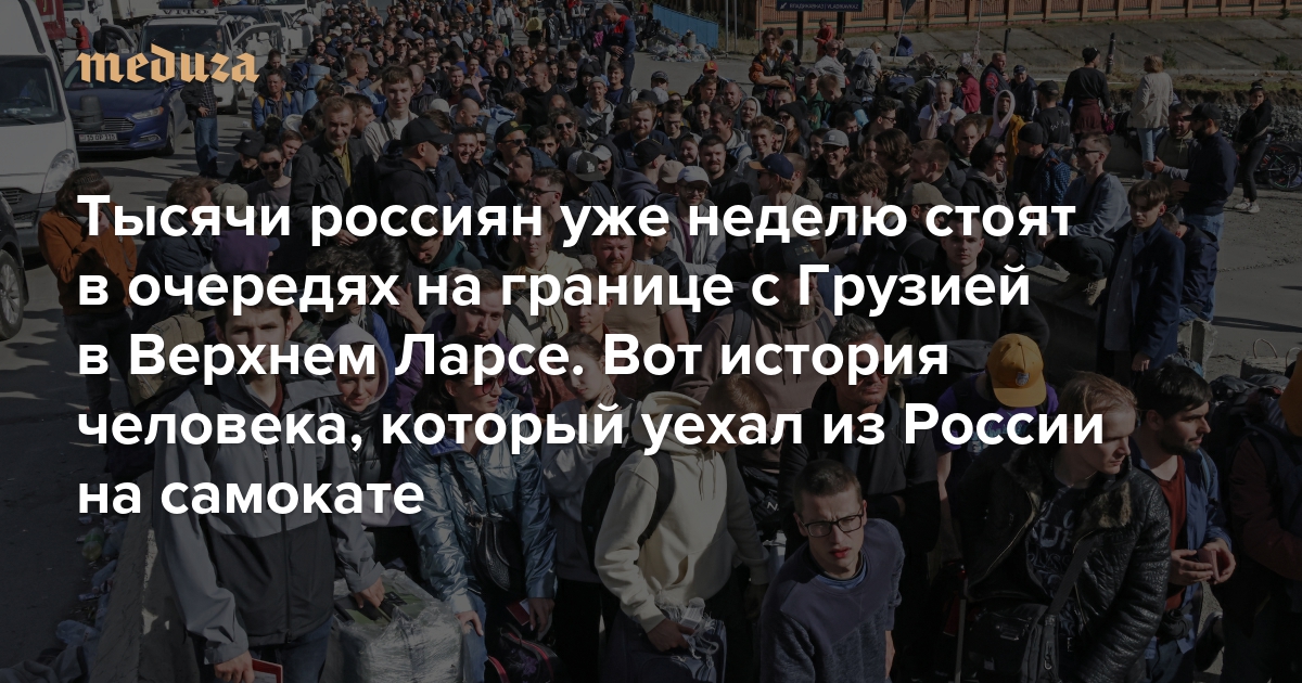 «Если бы нас развернули, я бы просто лег и заплакал» Тысячи россиян уже неделю стоят в очередях на границе с Грузией в Верхнем Ларсе. Вот история человека, который уехал из России на самокате