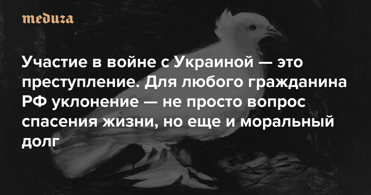 Участие в войне с Украиной — это преступление Для любого гражданина России уклонение от мобилизации — не просто вопрос спасения собственной жизни, но еще и моральный долг