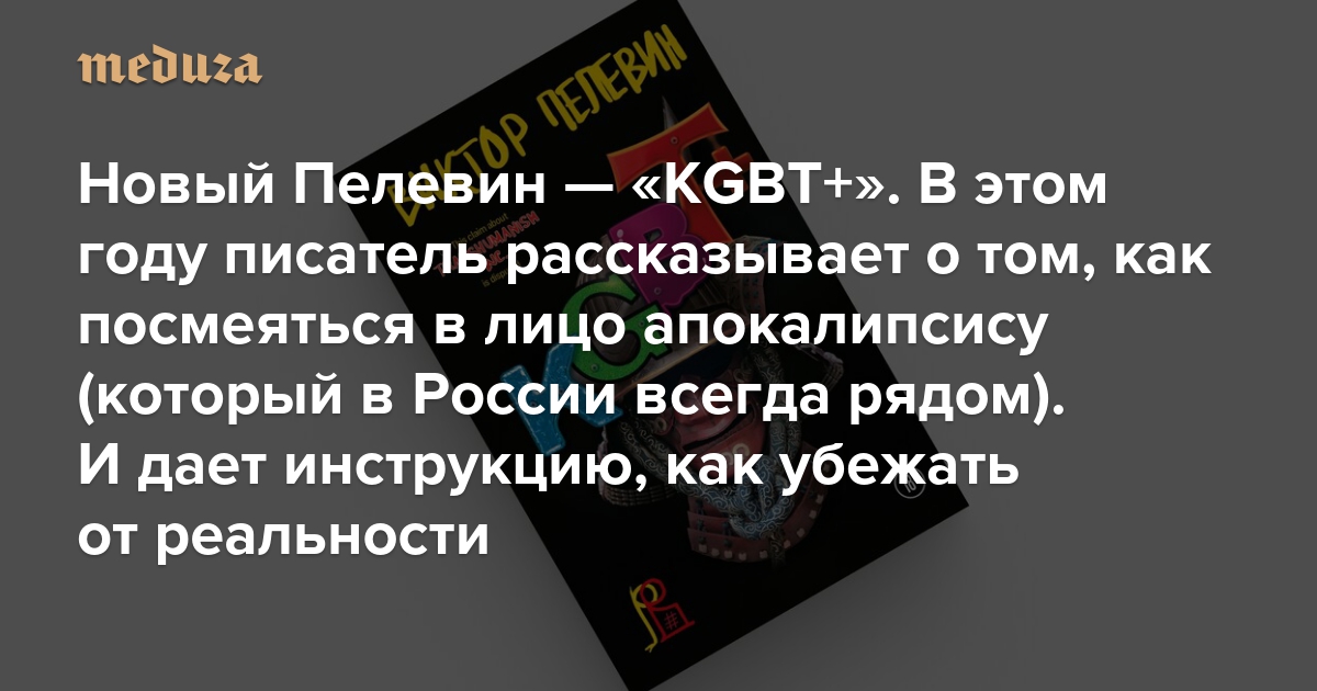 Новый Пелевин — «KGBT+» В этом году писатель рассказывает о том, как посмеяться в лицо апокалипсису (который в России всегда рядом). И дает инструкцию, как убежать от реальности