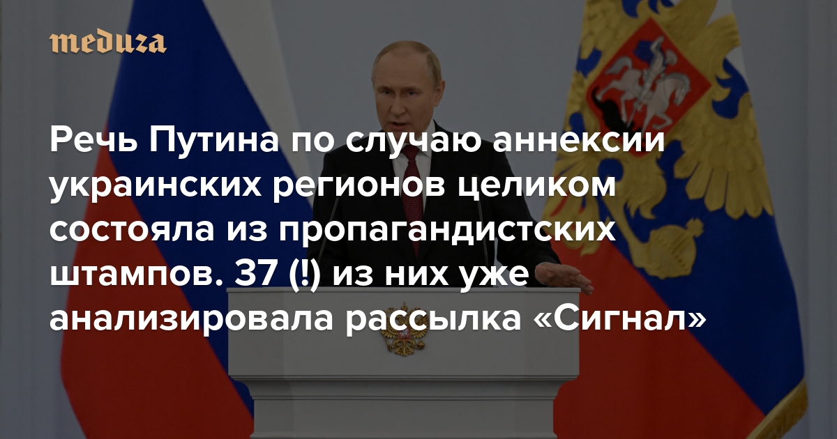 Речь Путина по случаю аннексии украинских регионов целиком состояла из пропагандистских штампов 37 (!) из них уже анализировала рассылка «Сигнал». Это новояз, с помощью которого власти манипулируют людьми