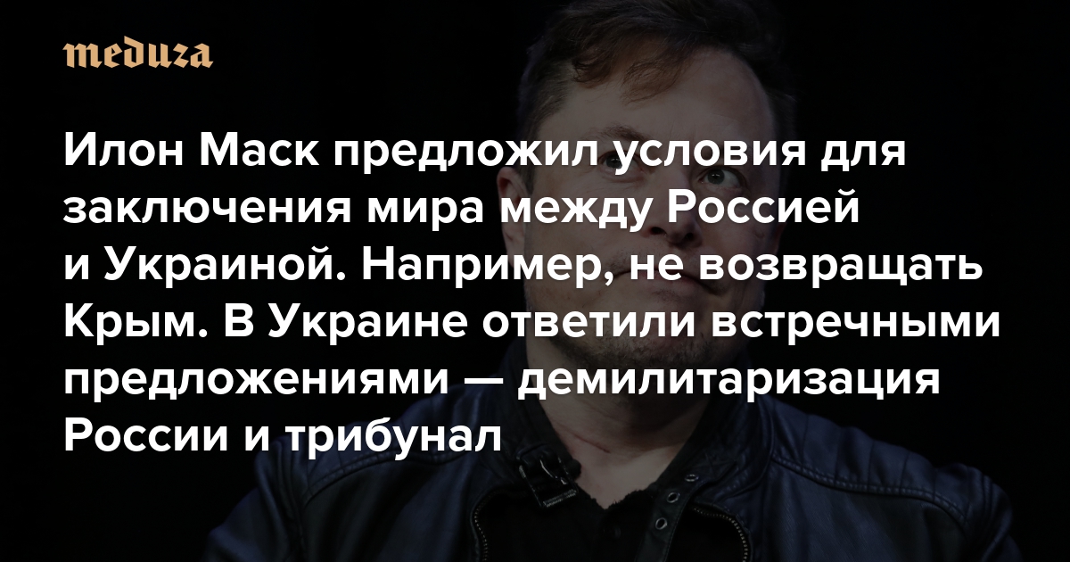 Илон Маск предложил условия для заключения мира между Россией и Украиной. Например, не возвращать Крым В Украине ответили встречными предложениями — демилитаризация России и трибунал над военными преступниками