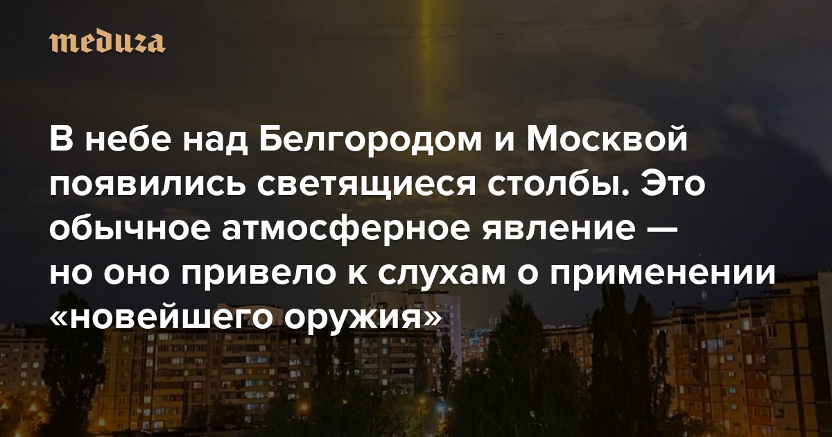 В небе над Белгородом и Москвой появились светящиеся столбы. Это обычное атмосферное явление — но оно привело к слухам о применении «новейшего оружия»