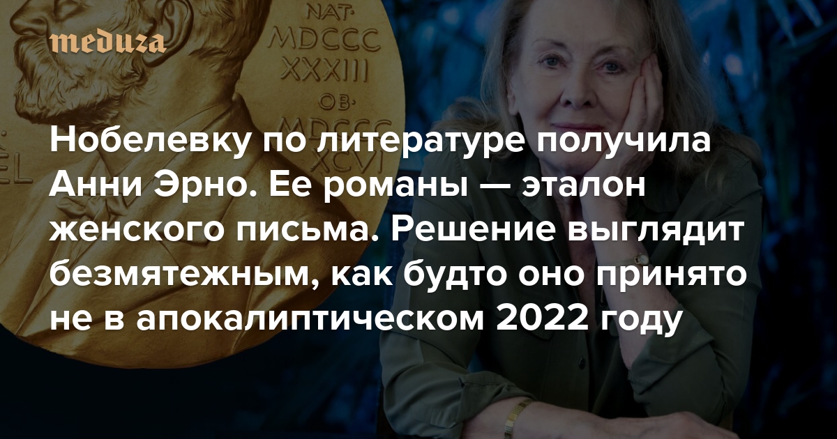 Нобелевская премия по литературе присуждена французской писательнице Анни Эрно. Ее наградили «за храбрость и клиническую точность, с которой она вскрывает истоки отчужденности и коллективные ограничения личной памяти». Эрно — автор во многом автобиографических романов «Событие», «Женщина», «Обыкновенная страсть», «Годы», «Внешняя жизнь» и других, ее работы — образец женского письма. Литературный критик Галина Юзефович рассказывает о том, насколько странным в 2022-м выглядит это решение Нобелевского комитета.