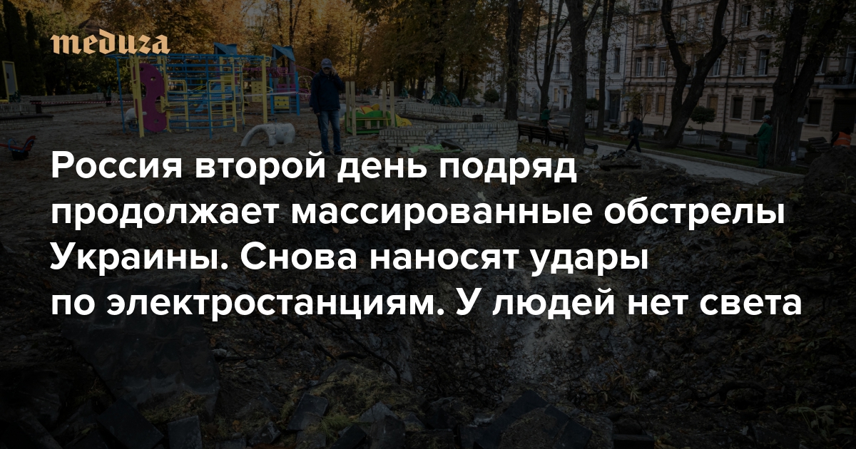 Россия проводит массированный обстрел Украины второй день подряд. 10 октября российские войска, по данным Генштаба ВСУ, нанесли больше 60 ракетных и 30 авиационных ударов, украинские ПВО сбили 46 ракет и 27 беспилотников. По последним данным украинских властей, из-за обстрелов 10 октября погибли 23 человека, больше 100 пострадали. В более чем 30 населенных пунктах, в том числе в Киеве, Харькове и Львове, пострадала инфраструктура. В почти четырех тысячах населенных пунктов возникли перебои с подачей электроэнергии. В большинстве из них к утру 11 октября дали свет (при этом в Киеве все еще возможны веерные отключения).