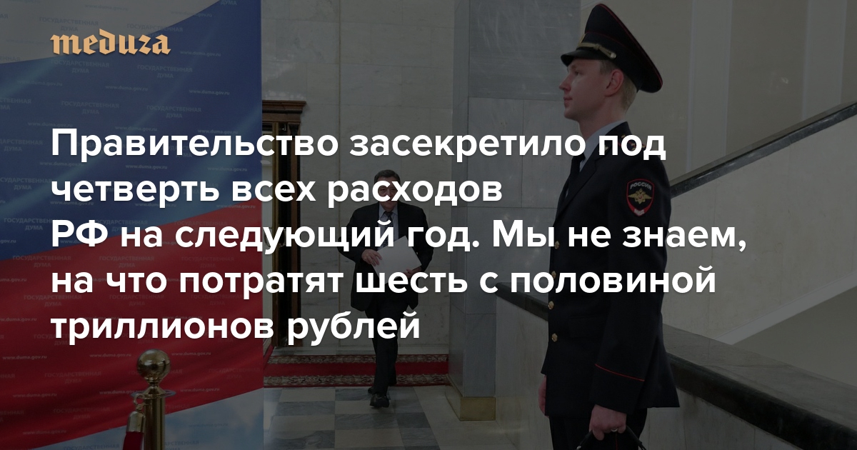Один из главных вопросов к проекту бюджета на 2023 год — из каких ресурсов правительство РФ намерено финансировать войну и содержать аннексированные украинские территории. Ответ, вероятно, кроется в закрытой части бюджетных расходов. По расчетам «Медузы», власти решили засекретить рекордный объем трат: мы не знаем точно, на что зарезервирована почти четверть всех расходов. В денежном выражении речь о более чем шести с половиной триллионах рублей. Значительная часть суммы — расходы, связанные с «военными» статьями: национальной обороной и безопасностью.