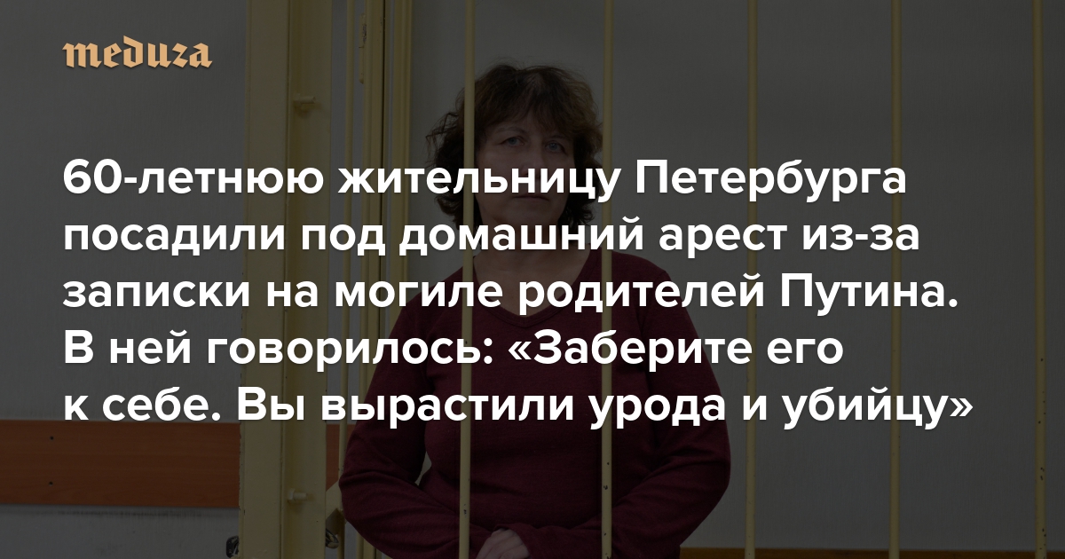 60-летнюю жительницу Петербурга посадили под домашний арест из-за записки на могиле родителей Путина В ней говорилось: «Заберите его к себе. Вы вырастили урода и убийцу»