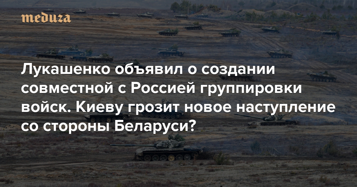 После того как Александр Лукашенко объявил о создании совместной российско-белорусской военной группировки на территории его страны, появились слухи о том, что российское командование собирается повторить наступление на Украину с северного направления. Украинские власти (по крайней мере публично) разделяют эти опасения: президент Владимир Зеленский попросил страны «Большой семерки» прислать на границу с Беларусью наблюдателей, чтобы не допустить провокаций, которые могут дать повод для вступления этой страны в войну или новой российской атаки с ее территории. «Медуза» разбиралась, насколько реальна новая атака на Киев и другие северные регионы Украины.