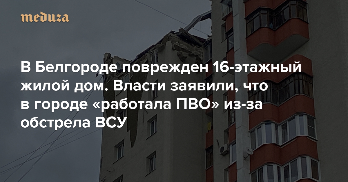 В Белгороде поврежден 16-этажный жилой дом. Власти заявили, что в городе «работала ПВО» из-за обстрела ВСУ Чья ракета (российская или украинская) упала на многоэтажку, непонятно