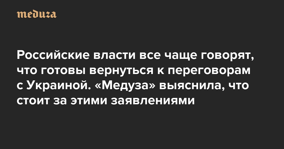 В последние недели представители российской власти все чаще говорят о возможных переговорах с Украиной или странами Запада. Например, 14 октября глава Службы внешней разведки России Сергей Нарышкин заявил, что переговоры возможны, но только «при определенных условиях» — правда, сами условия он так и не назвал. Неделей ранее, 6 октября, председатель Совета Федерации Валентина Матвиенко предложила украинским властям «прямо сегодня» начать переговоры по «мирному урегулированию» — но тоже на «условиях, которые предложит Россия».