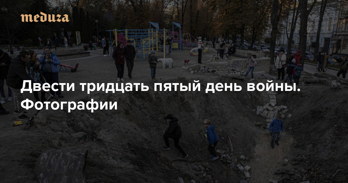 Украинские и российские силы продолжают параллельные наступления: ВСУ — на границе Харьковской и Луганской областей, отряды ЧВК Вагнера — на Бахмут в Донецкой области. 16 октября власти Белгородской области сообщили о массовом убийстве на военном полигоне, которое произошло днем ранее. По данным Минобороны РФ, погибли 11 человек, 15 получили ранения. Однако издание SOTA со ссылкой на очевидца сообщает о 22 погибших и 16 раненых. Американский Институт изучения войны утверждает, что Россия проводит на территории Украины этнические чистки, вывозя украинцев с оккупированных территорий и заселяя их гражданами РФ. «Медуза» показывает главные фотографии двести тридцать пятого дня войны.