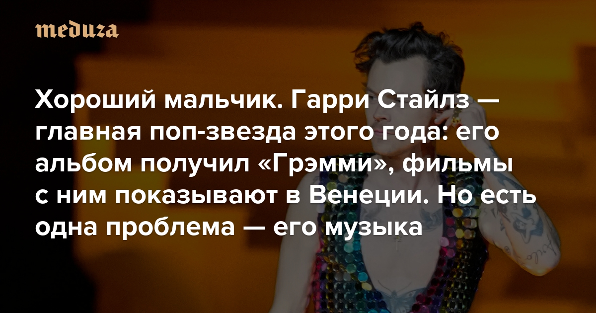 Хороший мальчик Гарри Стайлз — главная поп-звезда этого года: его последний альбом получил «Грэмми», фильмы с ним показывают в Венеции. Но есть одна проблема — его музыка
