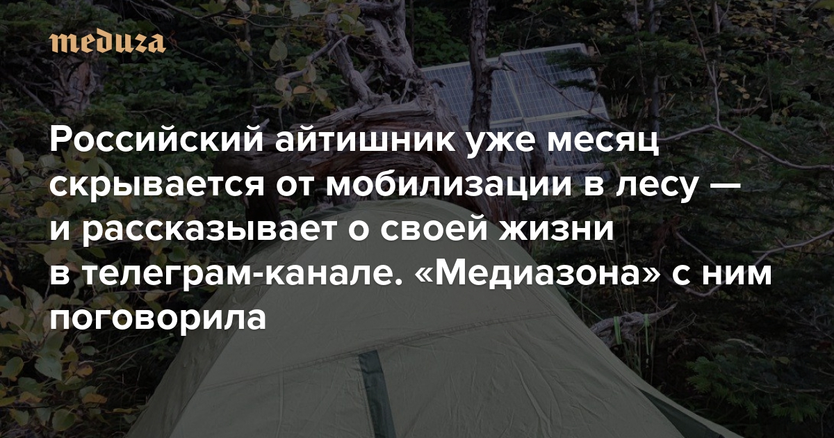 Российский айтишник уже месяц скрывается от мобилизации в лесу — и рассказывает о своей жизни в телеграм-канале. «Медиазона» с ним поговорила У него есть отдельная палатка для работы и мусорный контейнер с запасом еды