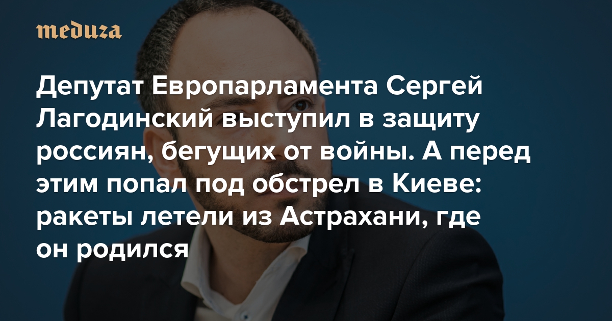 18 октября немецкий депутат Европарламента Сергей Лагодинский выступил с речью, в которой назвал «моральной обязанностью» Евросоюза спасение «России будущего», то есть противников войны, которые покидают Россию. Для этого, полагает он, ЕС должен выдавать россиянам гуманитарные визы — как по отдельности сейчас делают несколько стран, включая Германию. Выросший в Астрахани и уехавший из России в начале 90-х годов Лагодинский был однокурсником Алексея Навального в Йеле, а сейчас представляет немецких зеленых. Евродепутат рассказал «Медузе», почему он решился защитить бегущих от войны россиян и как совсем недавно он попал под обстрел Киева — ракетами, по данным украинских властей, выпущенными из его родного города.