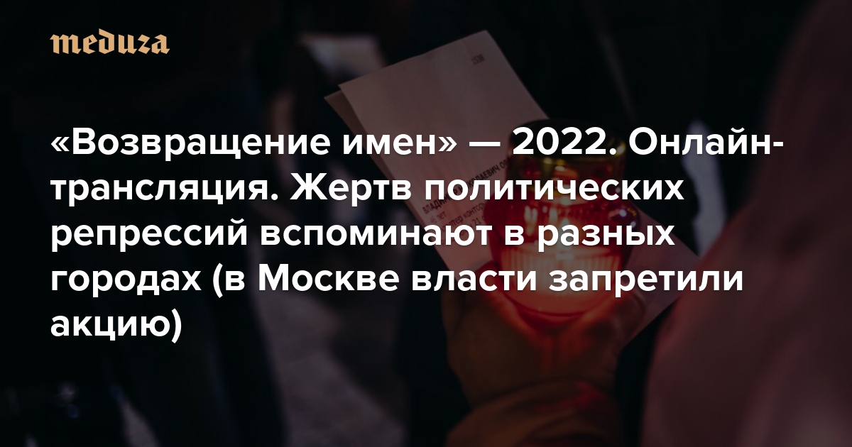 «Возвращение имен» — 2022. Онлайн-трансляция Жертв политических репрессий вспоминают в разных городах — от Амстердама до Ярославля. В Москве акцию проводить запретили