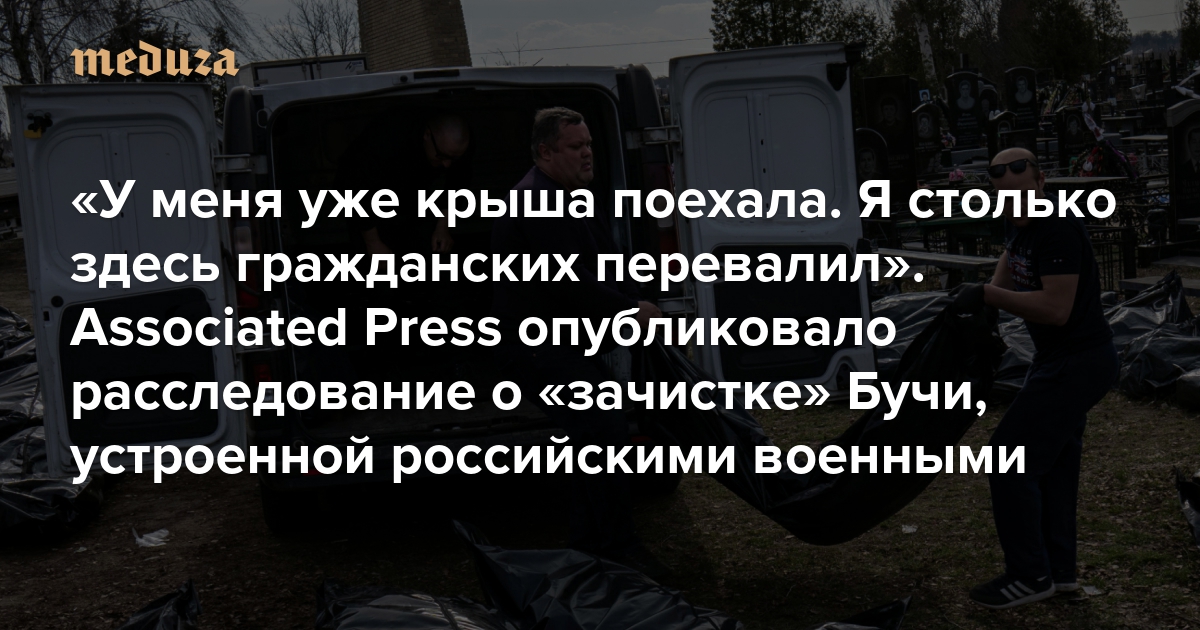 «У меня уже крыша поехала. Я столько здесь гражданских перевалил» Associated Press опубликовало расследование о «зачистке» Бучи, устроенной российскими военными. Ее подтверждают перехваченные телефонные разговоры