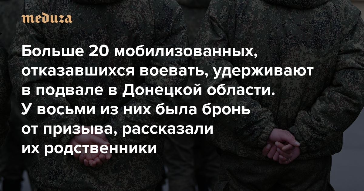 Больше 20 мобилизованных, отказавшихся воевать, удерживают в подвале в Донецкой области У восьми из них была бронь от призыва, рассказали их родственники